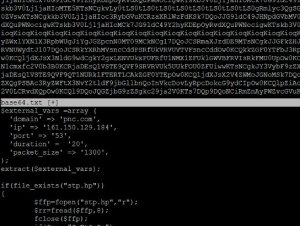 After decoding the incoming PHP requests, the security team could clearly identify them as DDoS attack commands, originating from a Turkish web design company website which was used as a remote Botnet C&C. From the looks of it, the Turkish website was also compromised and used as an additional buffer between the real hacker and its U.S. based targets.