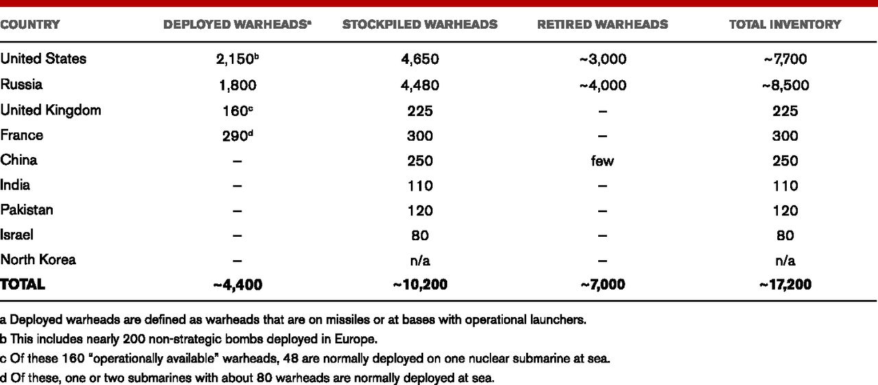 Current Nuclear Weapon Stockpile and Warhead Estimates: By Ralph Turchiano on September 15, 2013 Current Nuclear Weapon Stockpile and Warhead Estimates: http://bos.sagepub.com/content/69/5/75.full Share this: Click to share on Reddit (Opens in new window) Reddit Click to email a link to a friend (Opens in new window) Email Click to share on Facebook (Opens in new window) Facebook Click to share on X (Opens in new window) X Click to share on Tumblr (Opens in new window) Tumblr Click to share on Pinterest (Opens in new window) Pinterest Click to share on LinkedIn (Opens in new window) LinkedIn Click to print (Opens in new window) Print Like Loading...‹ (U//FOUO) U.S. Army Cyber/Electromagnetic Contest Capabilities Based Assessment (C/EM CBA) V0.9Syria: nearly half rebel fighters are jihadists or hardline Islamists, says IHS Jane’s report ›Categories: SocietalTags: nuclear stockpile, nuclear warheads, Nuclear weapon, nuclear weapons Related Articles Could e-voting machines in Election 2012 be hacked? Yes. RE_POST at request 2012 US Elections: Voting Machine Irregularities reported across the country _Repost at Request (2016) Celebrity Twitter accounts display ‘bot-like’ behavior – 40 and 60% of all Twitter accounts are bots (Re-Posted at Request 1 AUG 2017) Health costs of ageism calculated at $63 billion annually, study finds