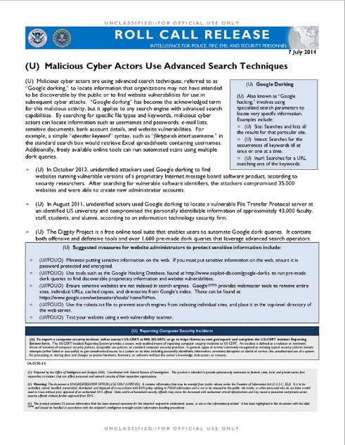 Feds Issue Bulletin on Google Dorking | Public Intelligence