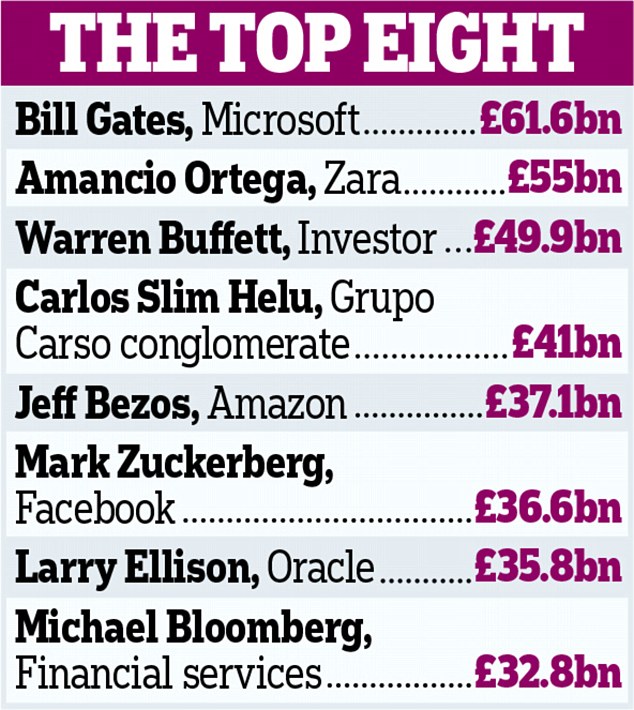 Eight richest men are worth the same as HALF the rest of the world: Their £350billion haul is equal to the wealth of 3.6billion people